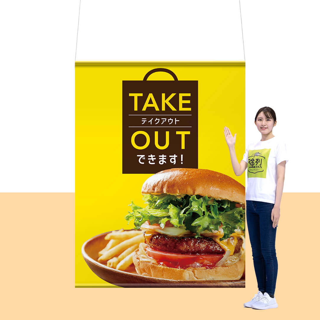 【合成紙】に片面ラミネート加工を施したタペストリーです。発色の良さが特徴で、売り出したい新商品におすすめです。