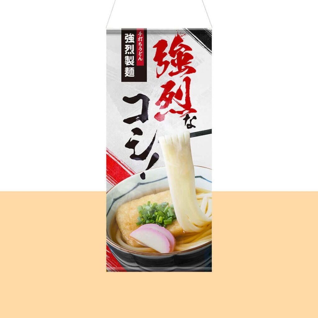 【ポンジ素材】を使用したタペストリーです。軽量で、向こうが薄く透けて見えるポンジ素材を活かし、店内で多く活用されています。