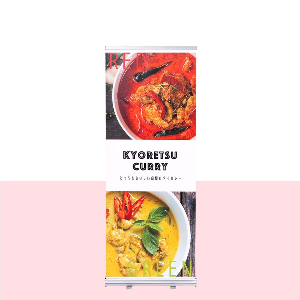 - 横長の大胆なデザインで新商品をアピール出来ます。駐車場や、縦長のタペストリーが設置できない店舗におすすめ。