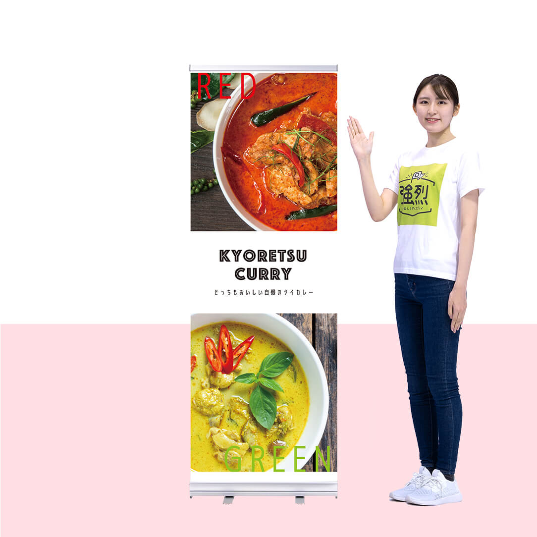 設置はロールを引き上げるだけ!高発色で目立ちます!