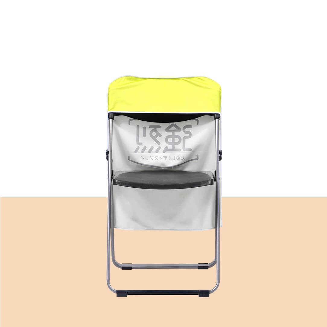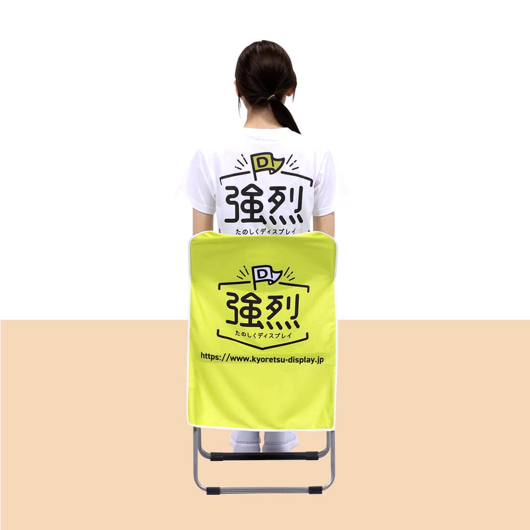 かぶせるだけでイスが広告に早変わりする便利アイテムです。ブースへ立ち寄りやすい雰囲気を生み出します。