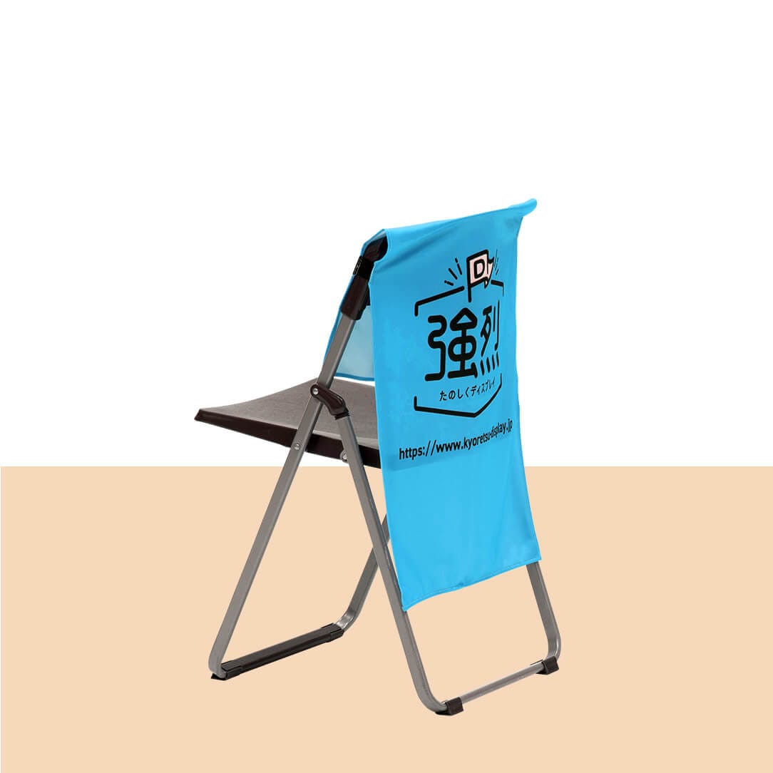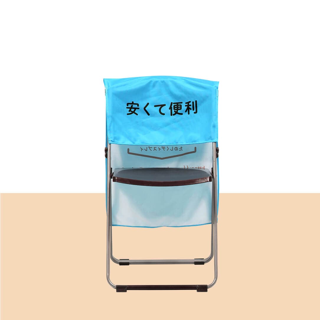 かぶせるだけでイスが広告に早変わりする便利アイテムです。ブースへ立ち寄りやすい雰囲気を生み出します。