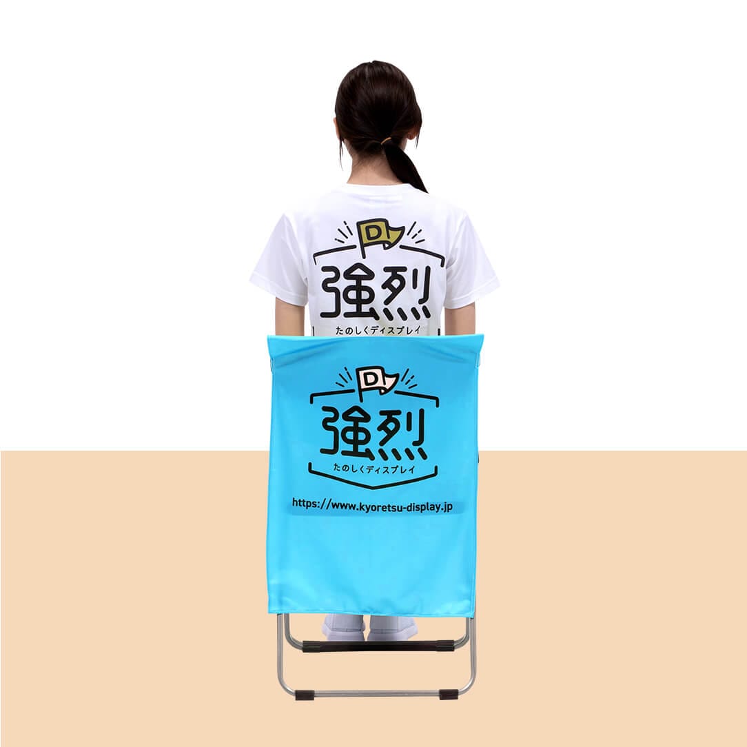 かぶせるだけでイスが広告に早変わりする便利アイテムです。ブースへ立ち寄りやすい雰囲気を生み出します。