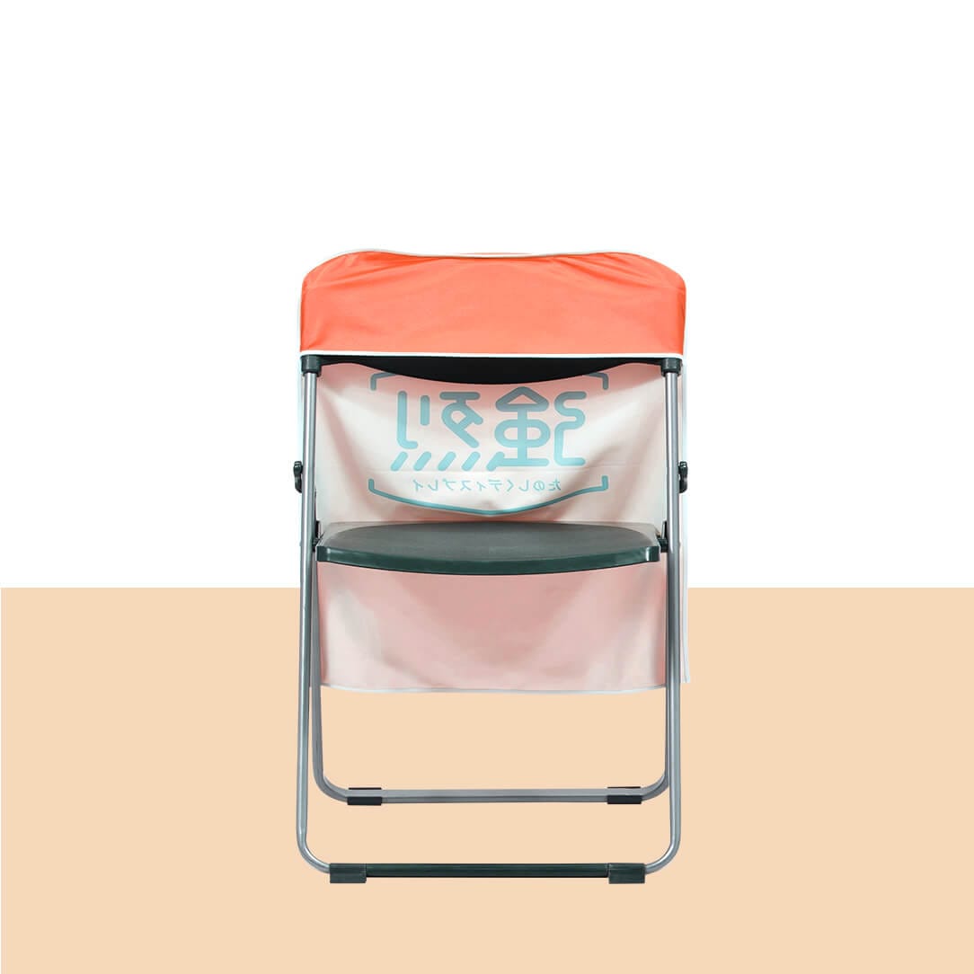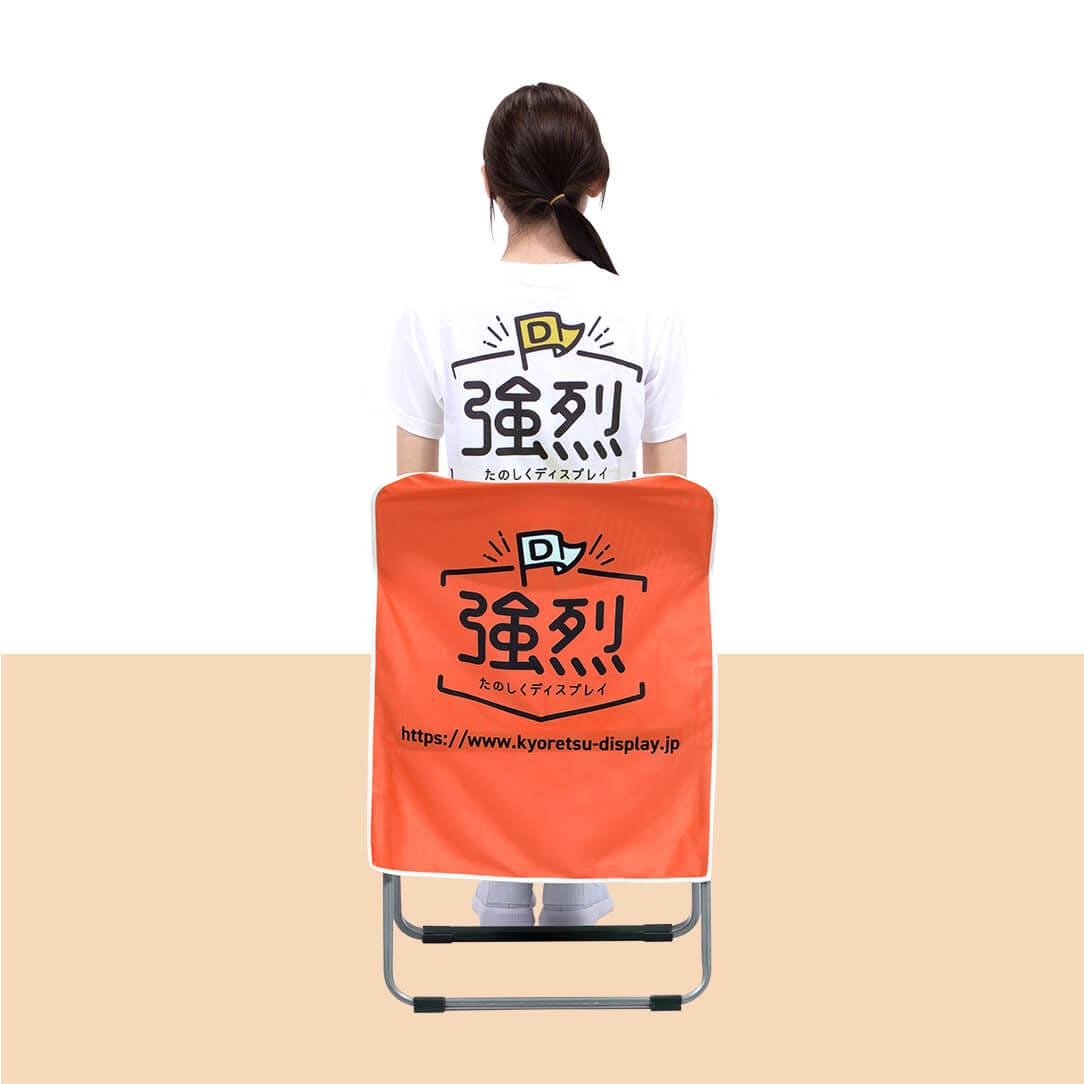 かぶせるだけでイスが広告に早変わりする便利アイテムです。ブースへ立ち寄りやすい雰囲気を生み出します。