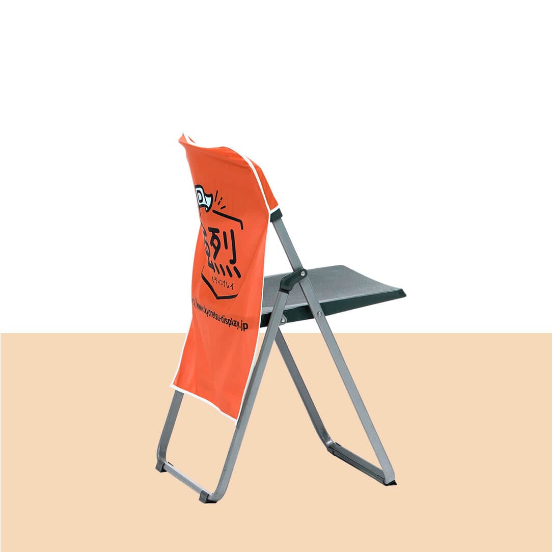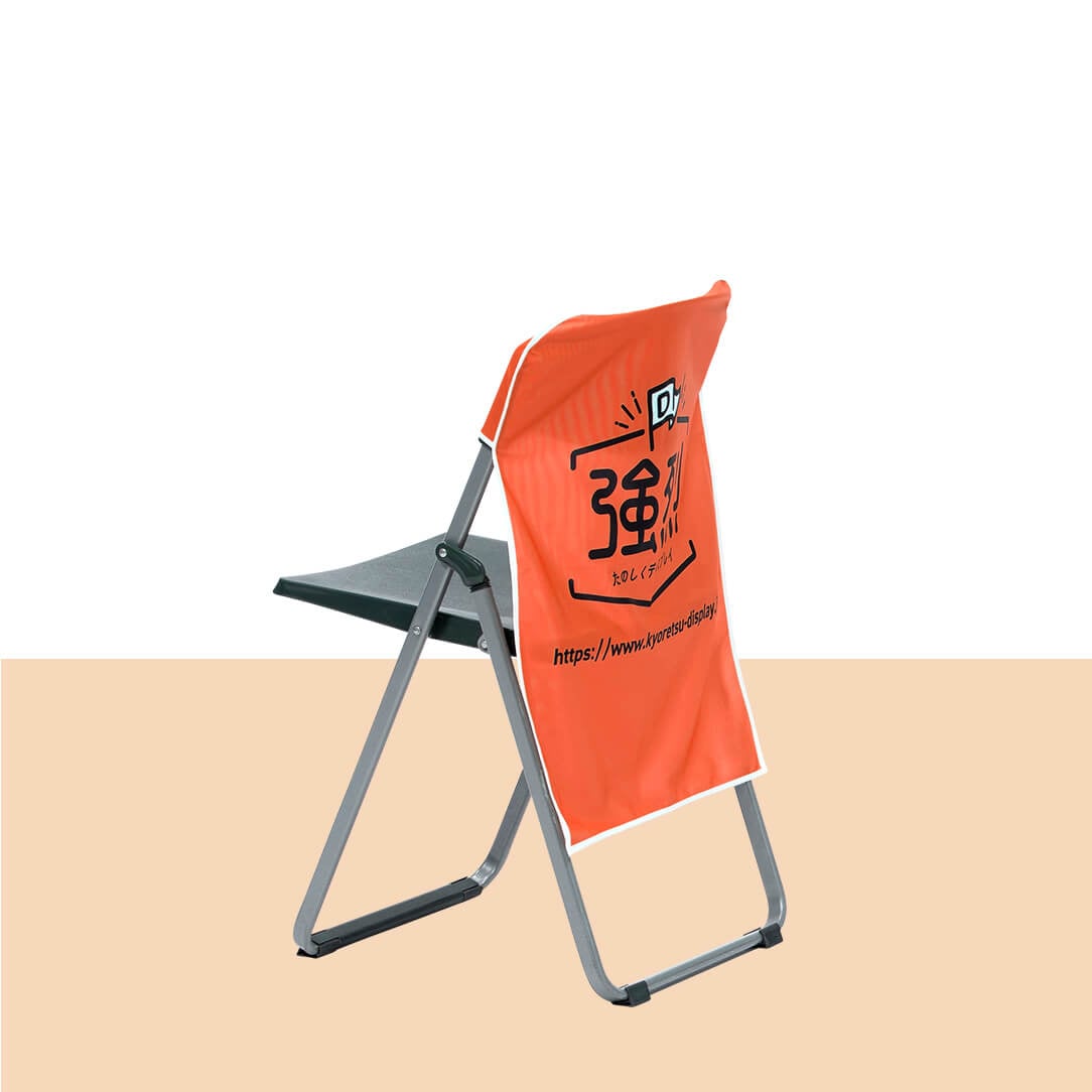 かぶせるだけでイスが広告に早変わりする便利アイテムです。ブースへ立ち寄りやすい雰囲気を生み出します。