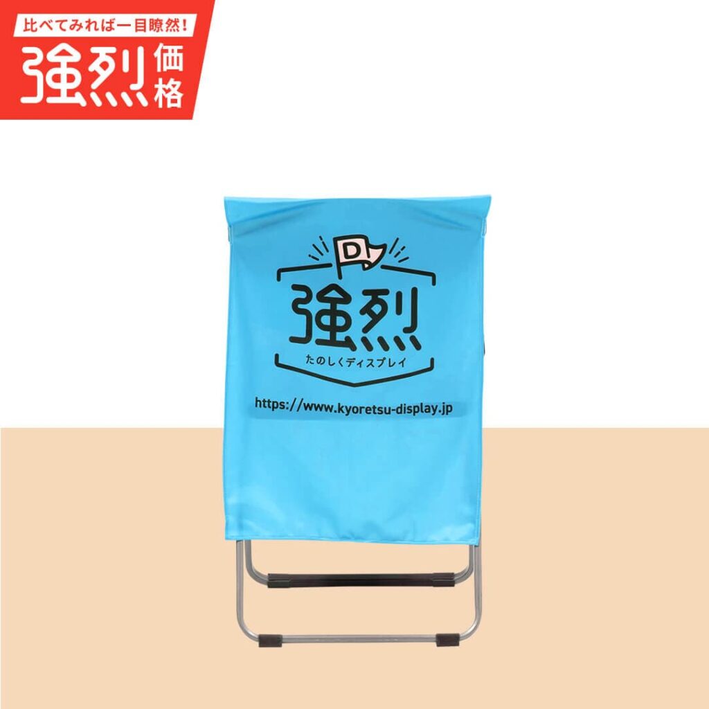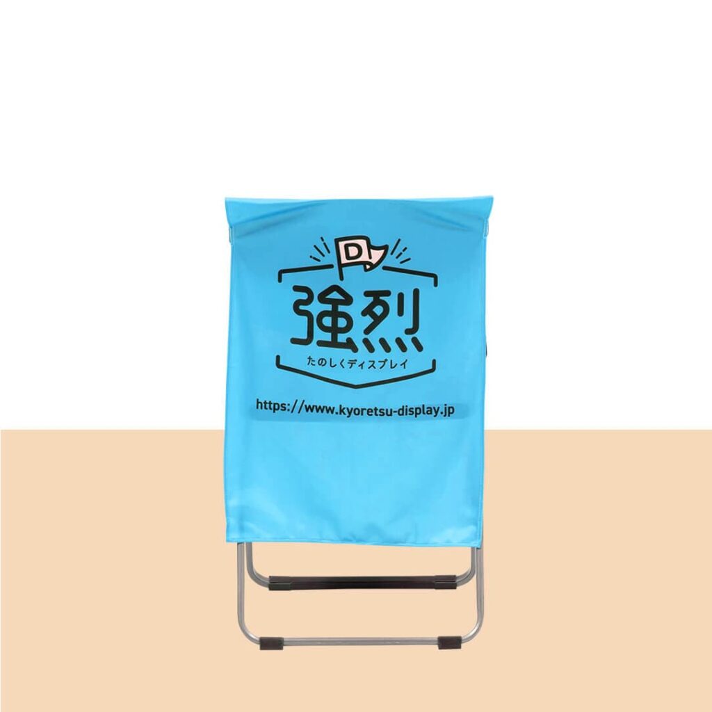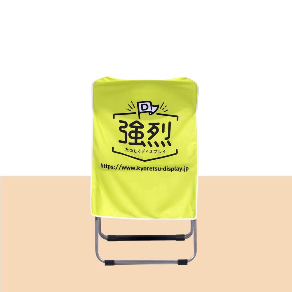 かぶせるだけでイスが広告に早変わりする便利アイテムです。ブースへ立ち寄りやすい雰囲気を生み出します。
