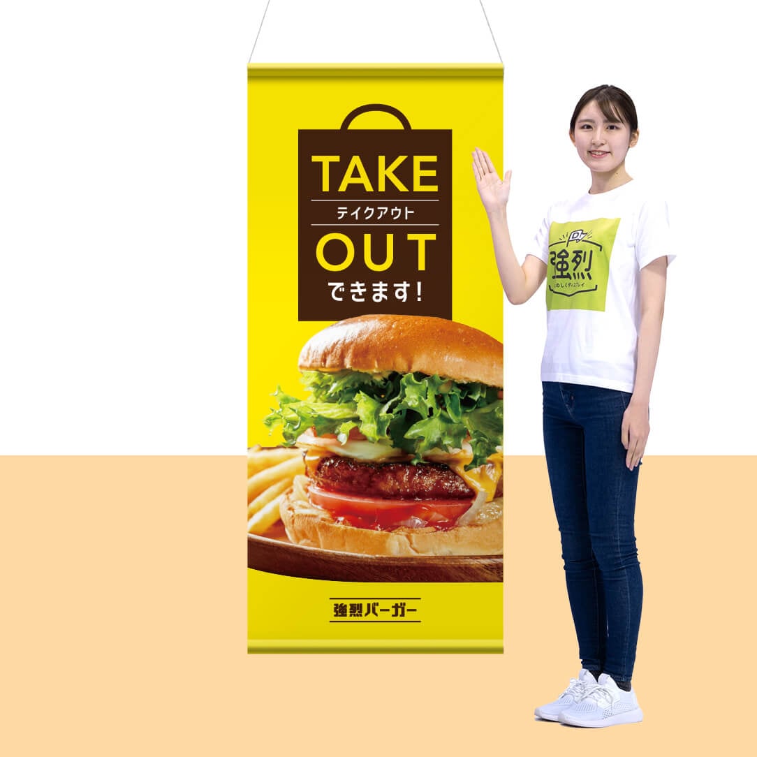 【合成紙】に片面ラミネート加工を施したタペストリーです。発色の良さが特徴で、売り出したい新商品におすすめです。