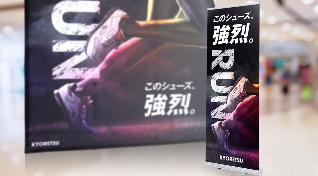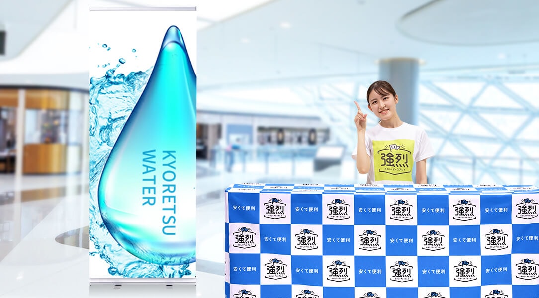 設置はロールを引き上げるだけ!高発色で目立ちます!